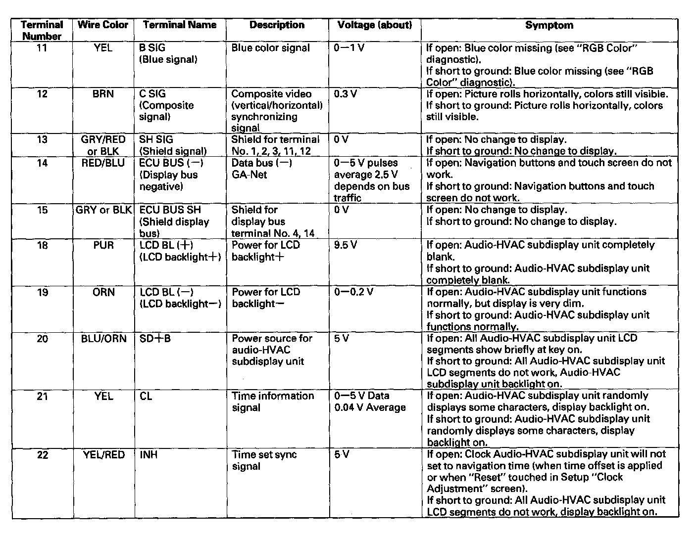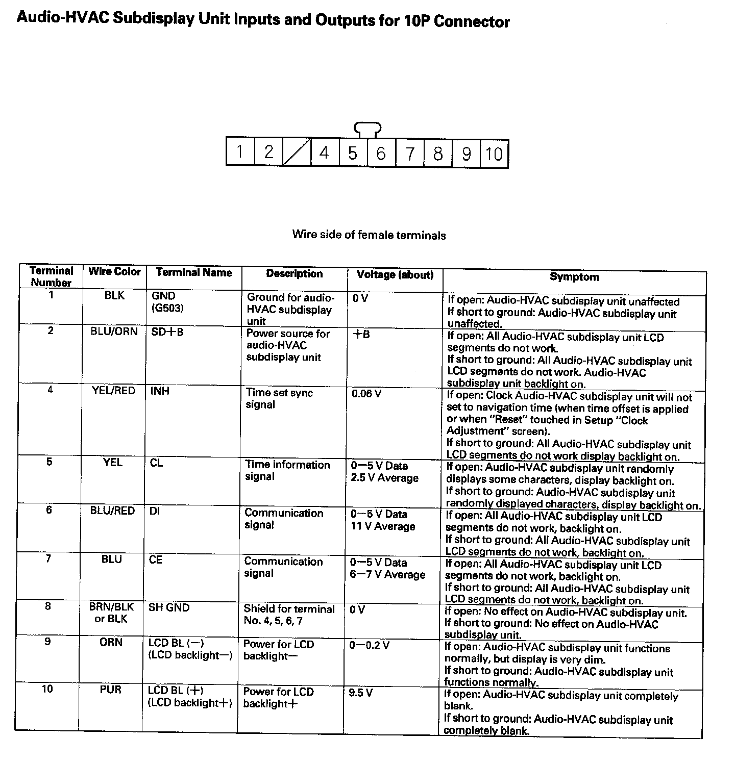 Audio-HVAC Subdisplay Unit Inputs And Outputs For 10P Connector: