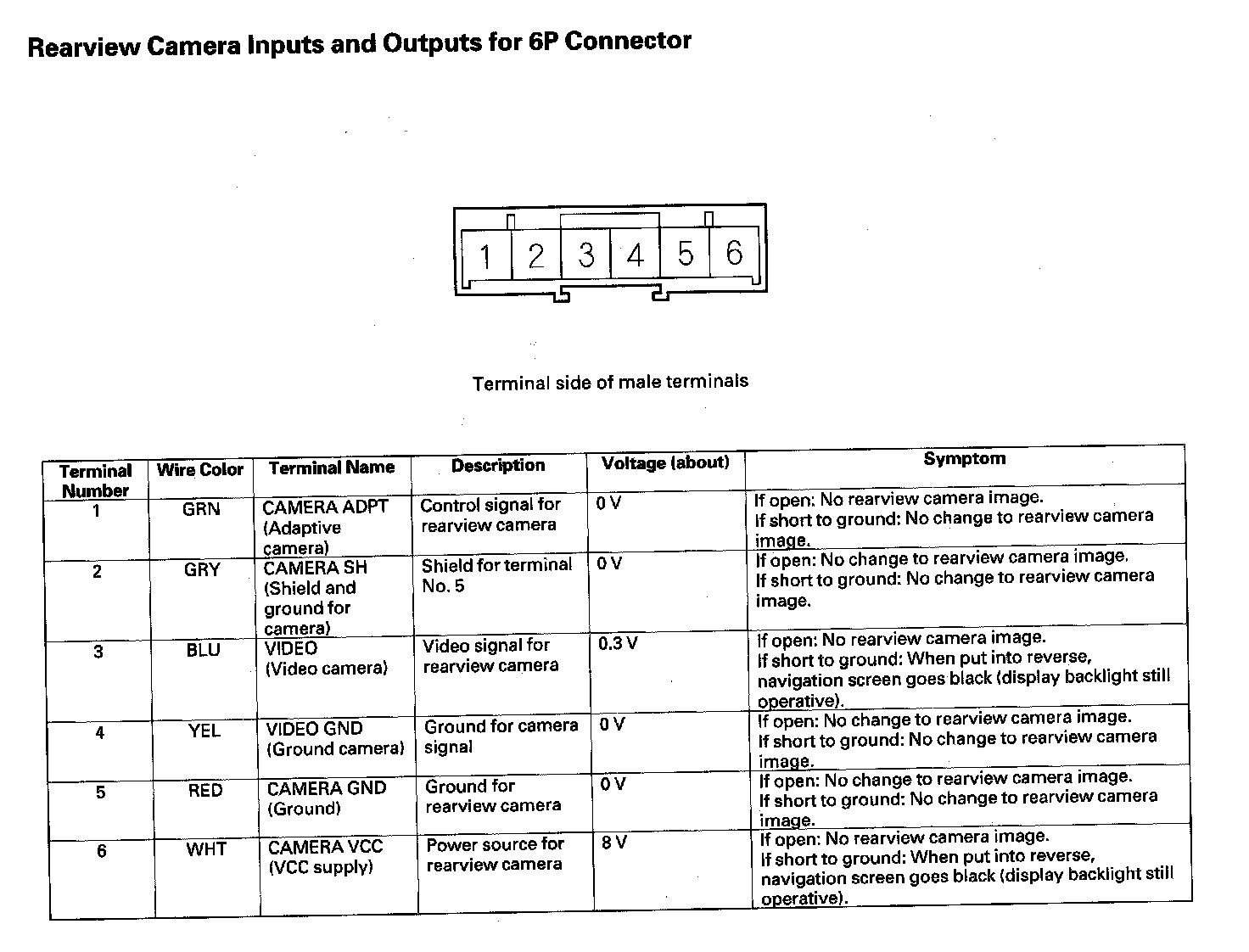 Rearview Camera Inputs And Outputs For 6P Connector: