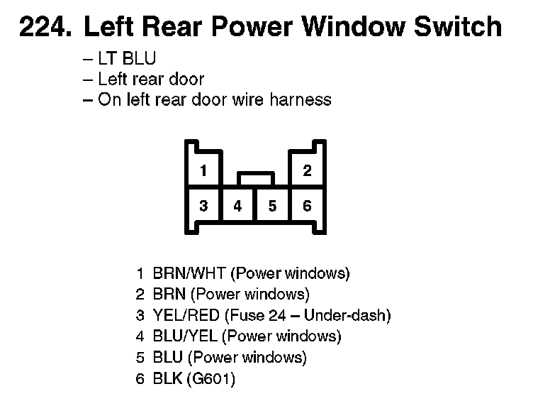 224. Left Rear Power Window Switch: