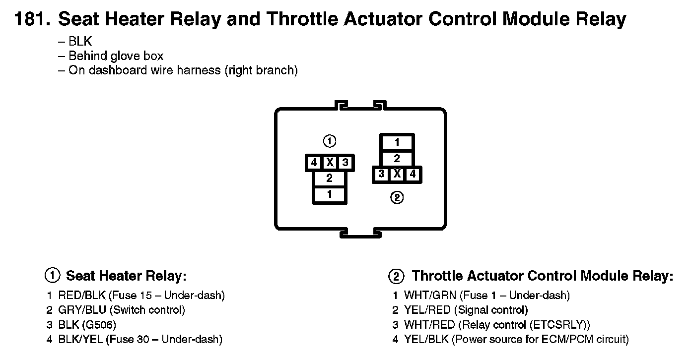 181. Seat Heater Relay And Throttle Actuator Control Module Relay: