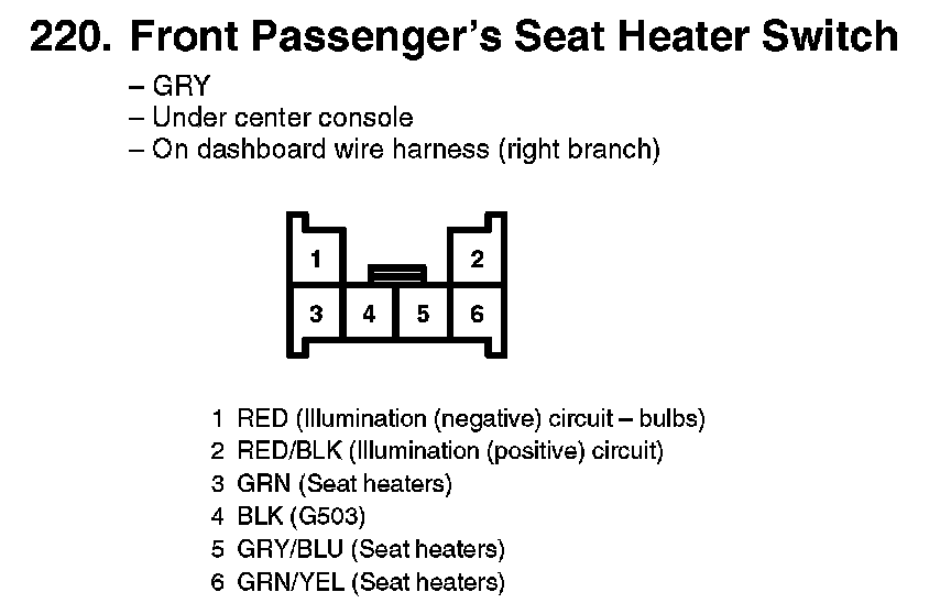 220. Front Passenger's Seat Heater Switch: