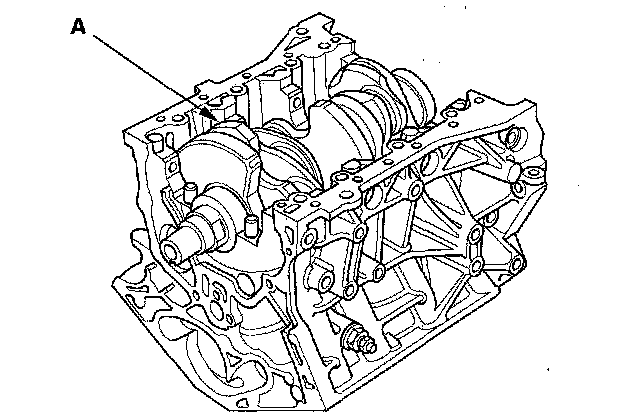 5. Lower the crankshaft (A) into the engine block.