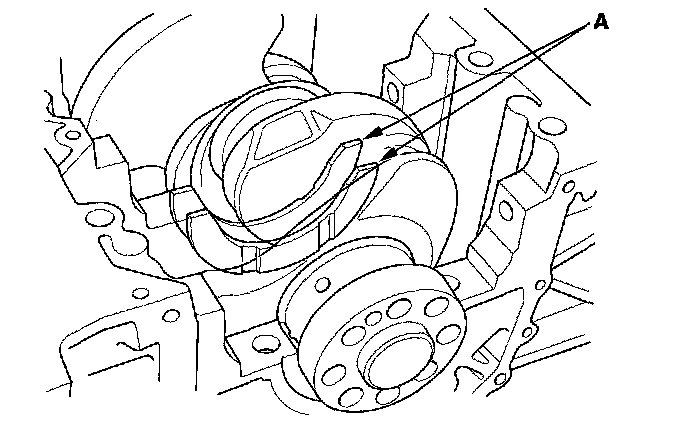 18. Line up the mark (A) on the connecting rod and cap, then install the cap.