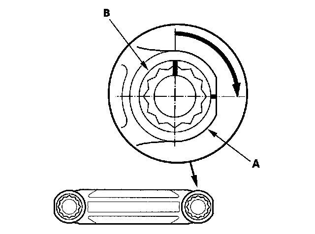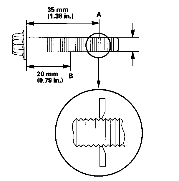 15. Measure the diameter of each connecting rod bolt at point A and point B.