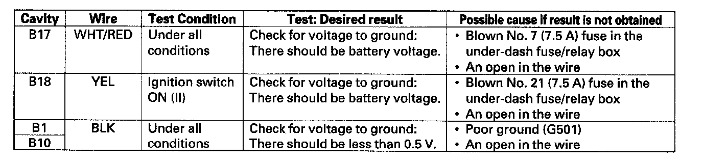 4. With the connector still disconnected, make these input tests at the connector.