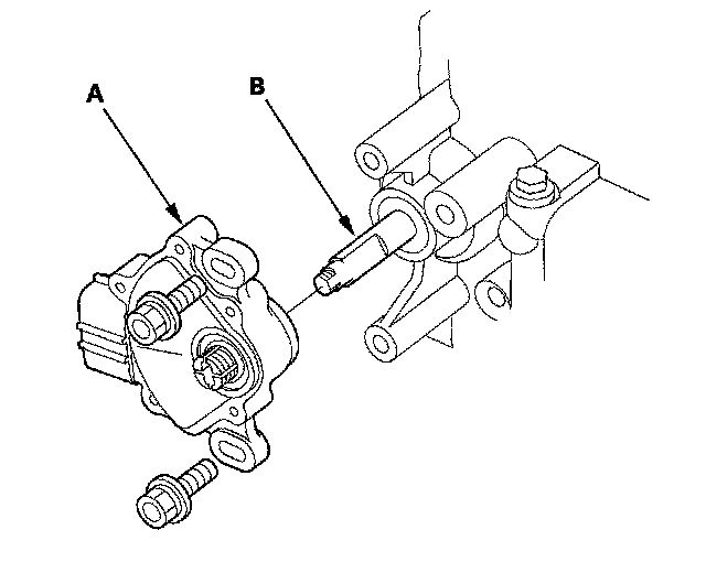 16. Install the transmission range switch (A) gently over the selector control shaft (B), and install the bolts loosely.