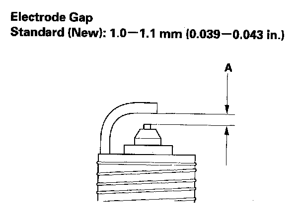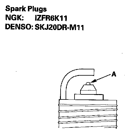 3. Do not adjust the gap (A) of iridium tip plugs, replace the spark plug if the gap is out of specification.