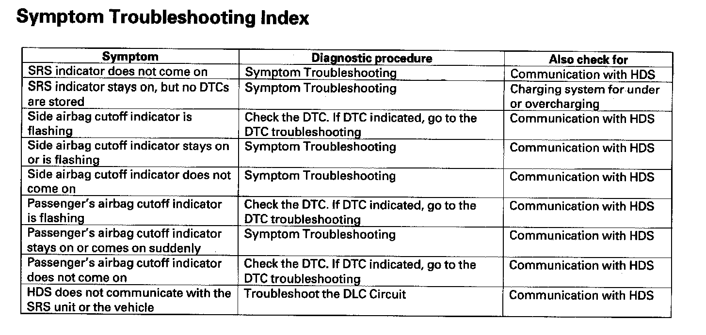 Symptom Troubleshooting Index: