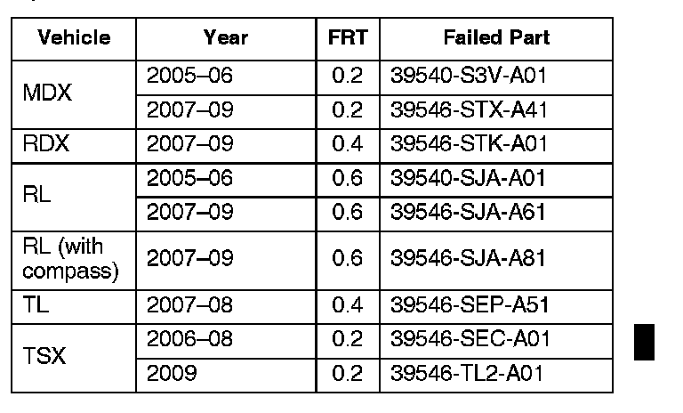 For information on navigation unit ordering, see Service Bulletin 06-001, Audio, Navigation, and RES Unit In-Warranty Exchange, and Audio and DVD Player Out-of-Warranty Repair
