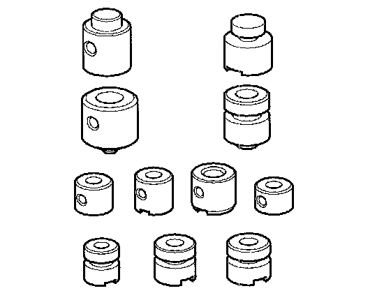 2. Install the valves and springs in the sequence shown for the main valve body, secondary valve body, regulator valve body, and accumulator body. Refer to the following valve cap illustrations, and install each valve cap so the end shown facing up will be facing the outside of the valve body, then secure the valve cap with the valve cap clip.