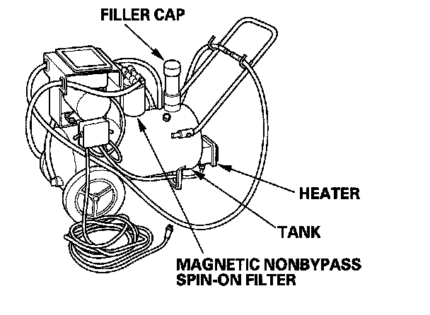 NOTE: If the red indicator above the HEAT toggle switch comes on, the fluid level in the tank is too low for the tank heater to work (see step 1 of this procedure).