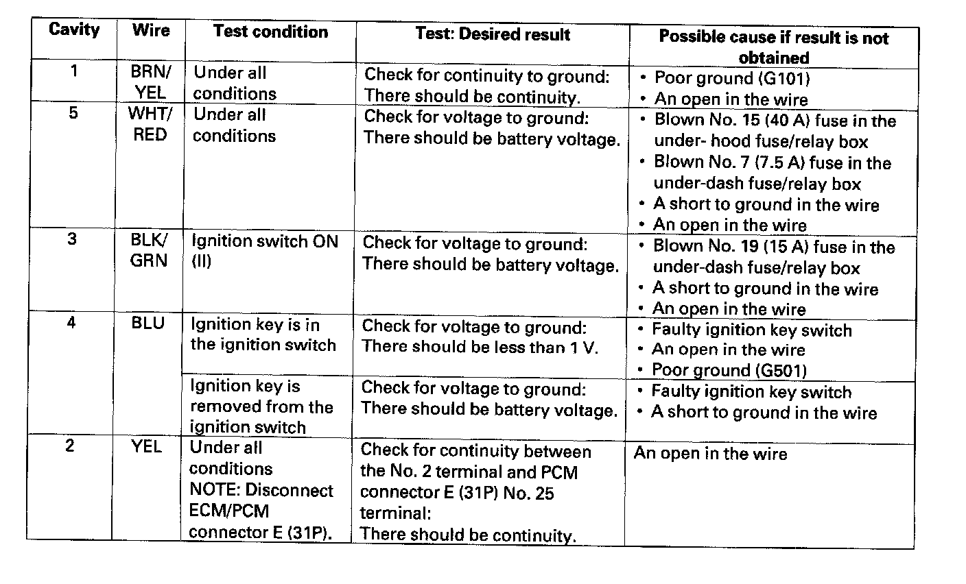 4. With the connectors still disconnected, make these input tests at the connector.