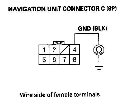 6. Check for continuity between navigation unit connector C (8P) terminal No. 4 and body ground.
