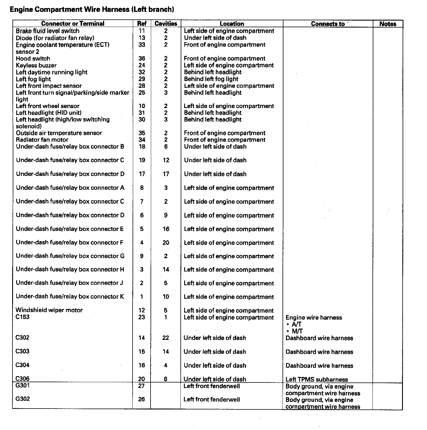 Engine Compartment Wire Harness (Left Branch):