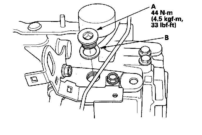 15. Install the filler plug (A) with a new washer (B).