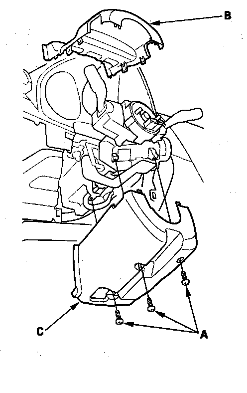 8. Remove the column cover screws (A), then remove the column covers (B, C).