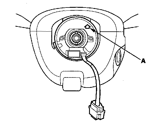 7. Align the projections on the cable reel with the holes on the steering wheel, and install the steering wheel with a new steering wheel bolt (A), then reconnect the connector.