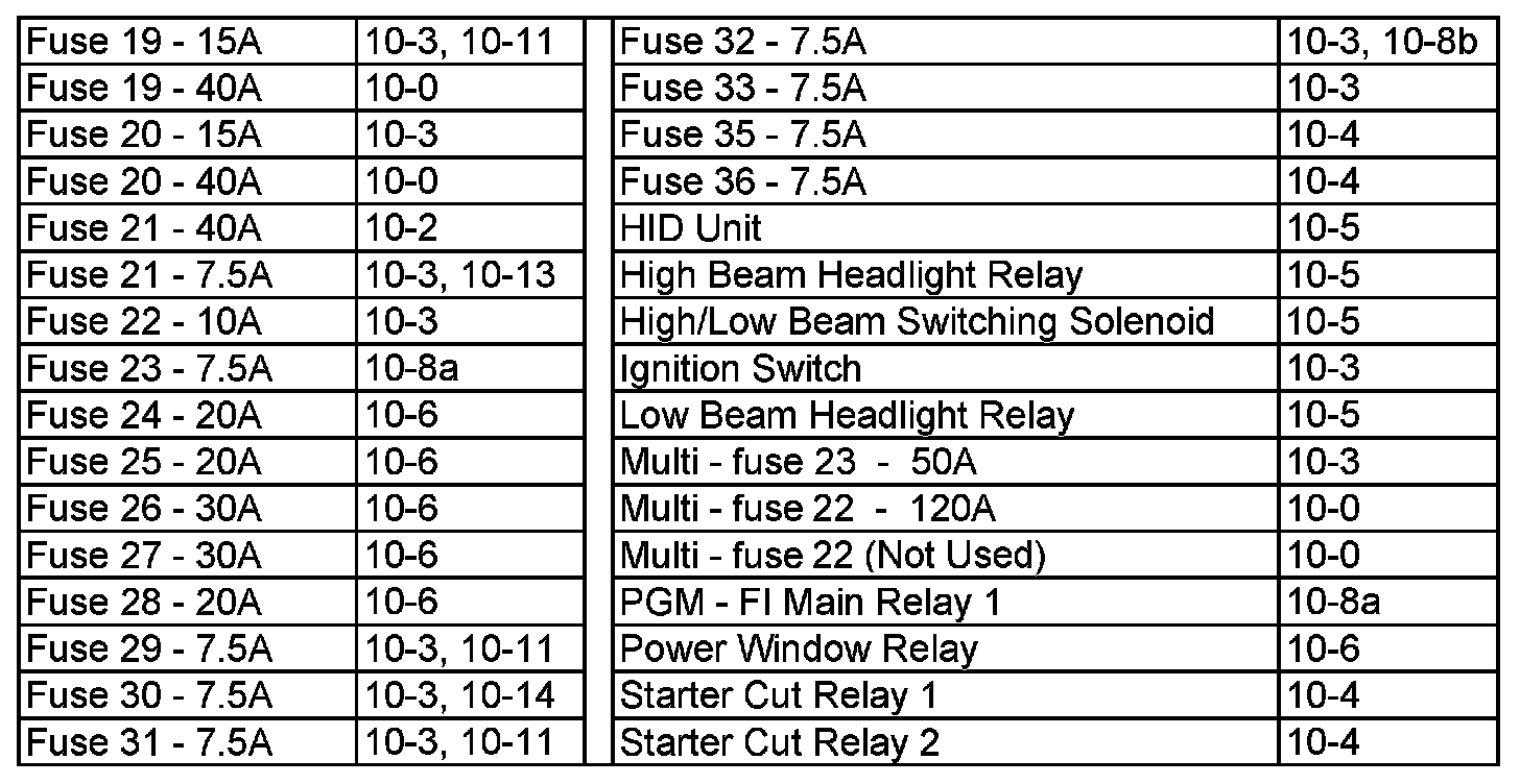 Fuse 19 - Starter Cut Relay 2: