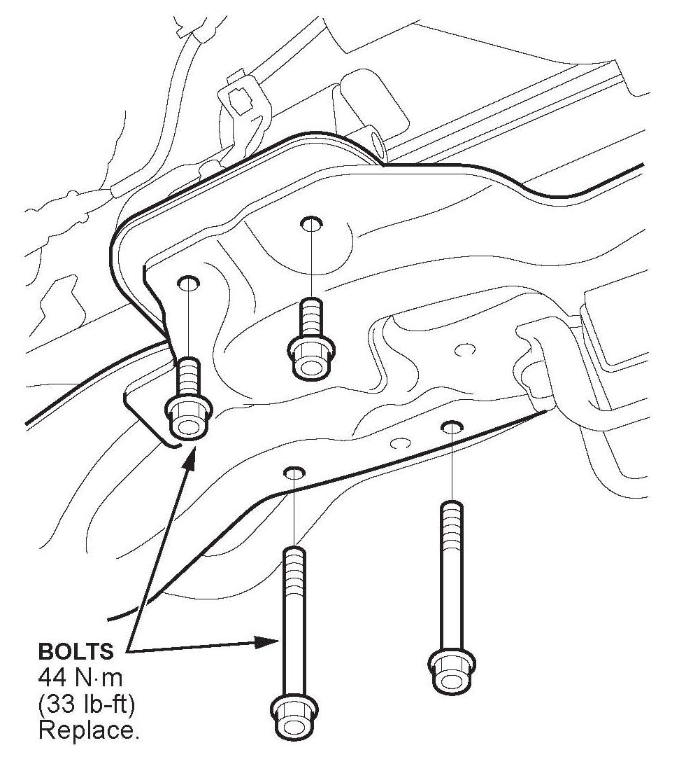 36. M/T models only: Install four new transmission front/rear lower mount nuts, and torque them to 44 N.m (33 lb-ft).