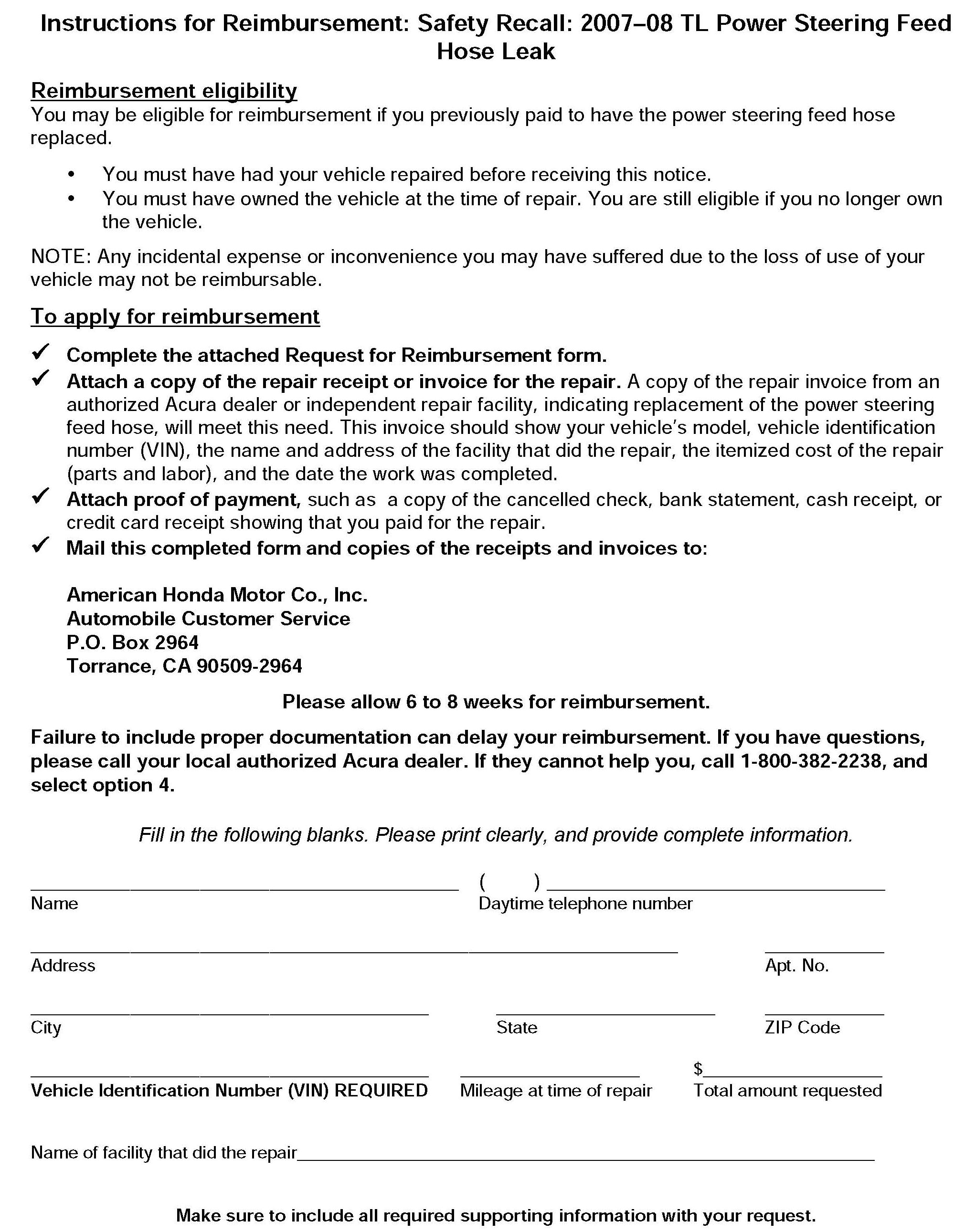 Safety Recall: 2007-08 TL Power Steering Feed Hose Leak