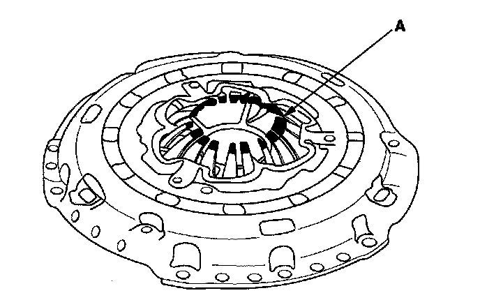6. Inspect the fingers of the diaphragm spring (A) for wear at the release bearing contact area.