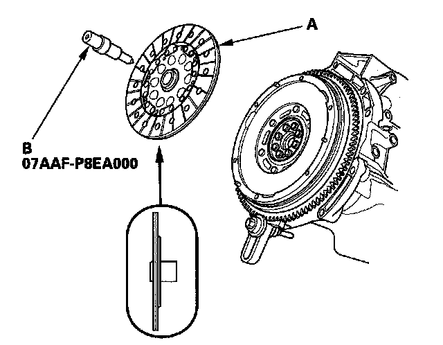 1. Temporarily install the clutch disc onto the splines of the transmission mainshaft. Make sure the clutch disc slides freely on the mainshaft.