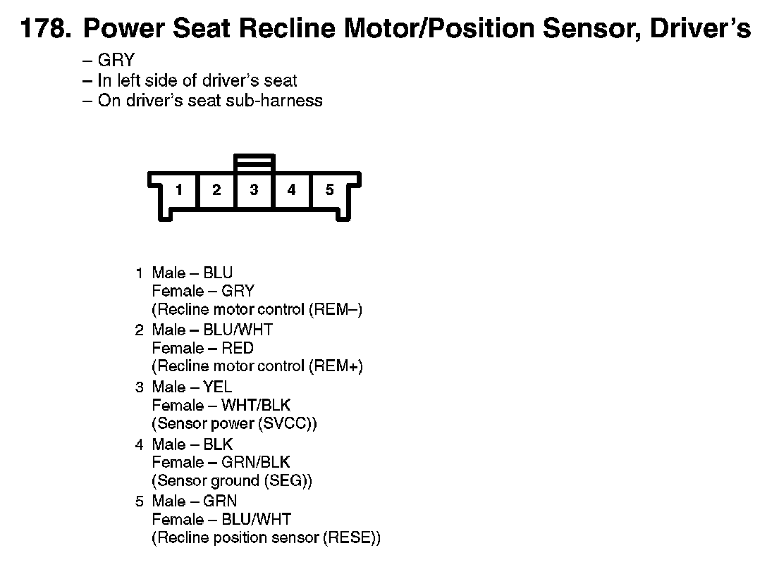178. Power Seat Recline Motor/Position Sensor, Driver's: