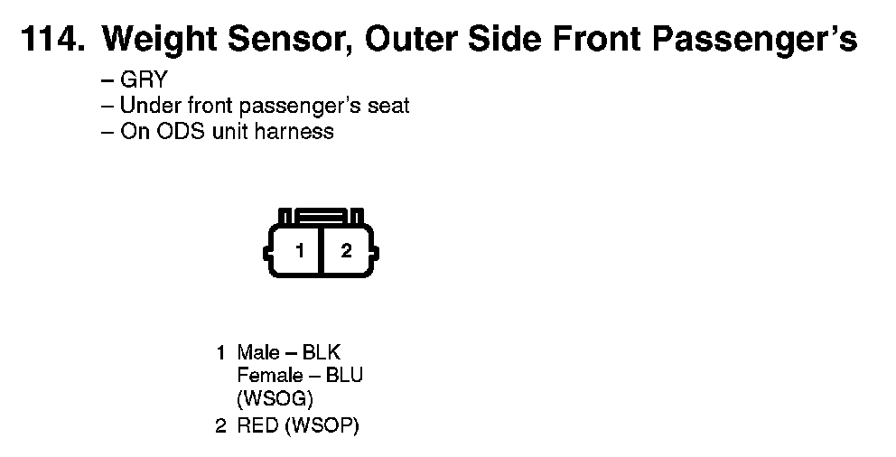 114. Weight Sensor, Outer Side Front Passenger's:
