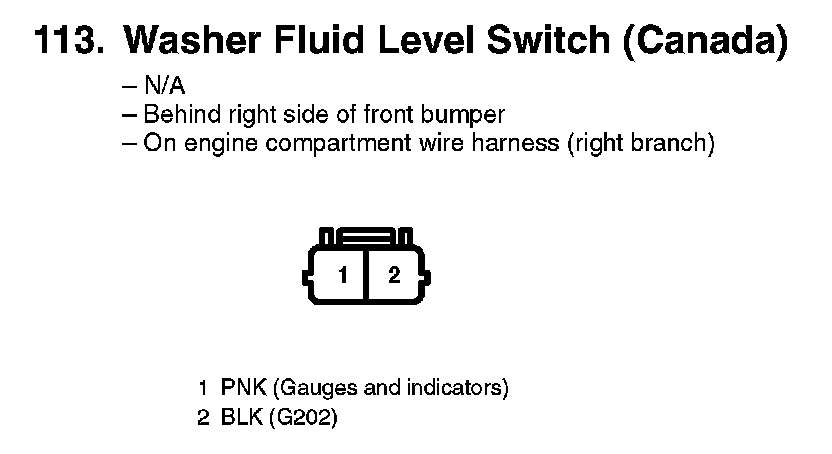 113. Washer Fluid Level Switch (Canada):