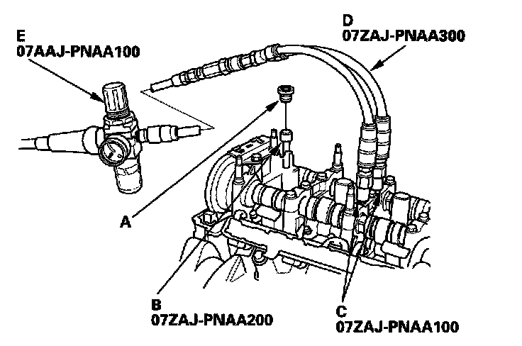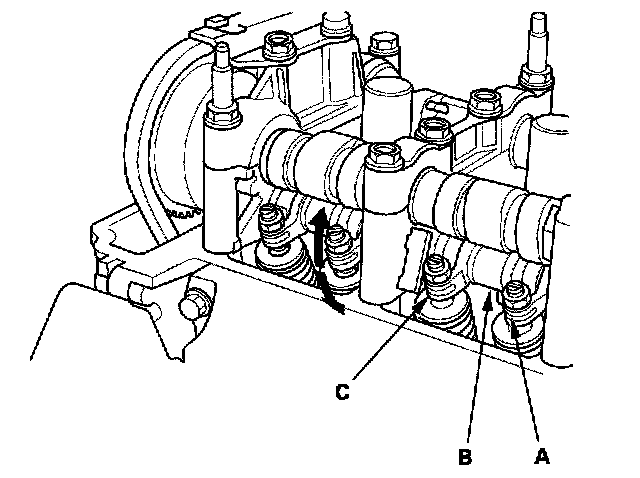 9. Remove the No. 2 and No. 3 camshaft holder bolts, and install the VTEC air adapters (C) finger-tight.
