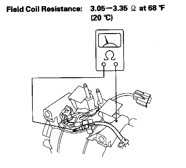 5. Check resistance of the field coil, If resistance is not within specifications, replace the field coil.