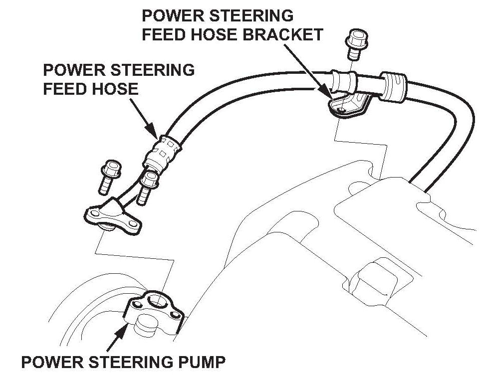 9. Remove the two bolts from the end of the P/S feed hose, then remove the hose from the power steering pump.
