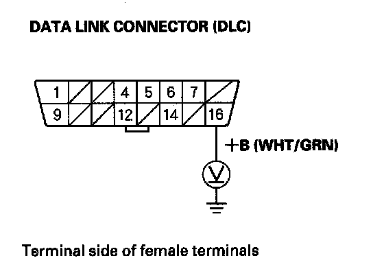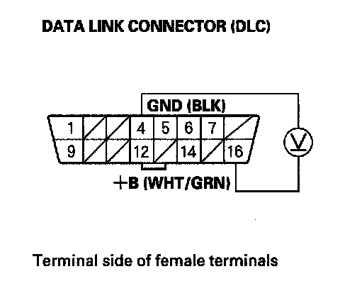 25. Measure voltage between DLC terminal No. 16 and body ground.