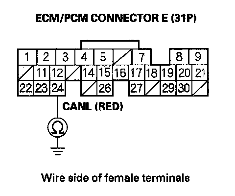 35. Check for continuity between ECM/PCM connector terminal E24 and body ground.