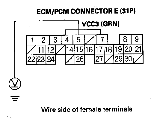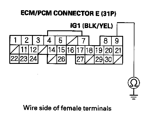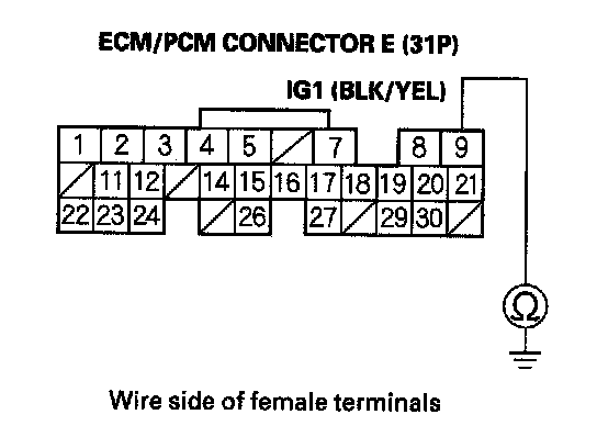 32. Check for continuity between ECM/PCM connector terminal E11 and body ground.