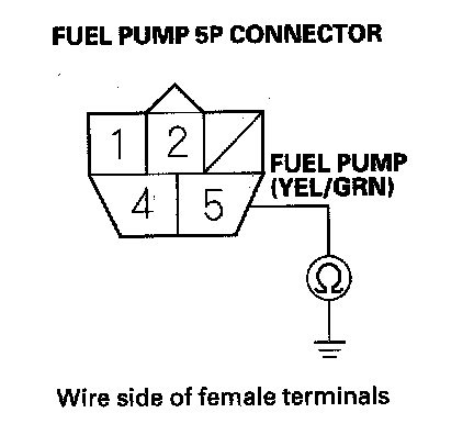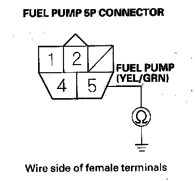 58. Check for continuity between fuel pump 5P connector terminal No. 5 and body ground.