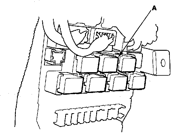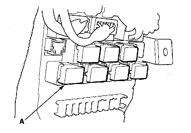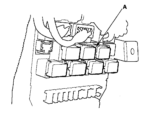 51. Remove the left kick panel, then remove PGM-FI main relay 2 (FUEL PUMP) (A) from the under-dash fuse/relay box.