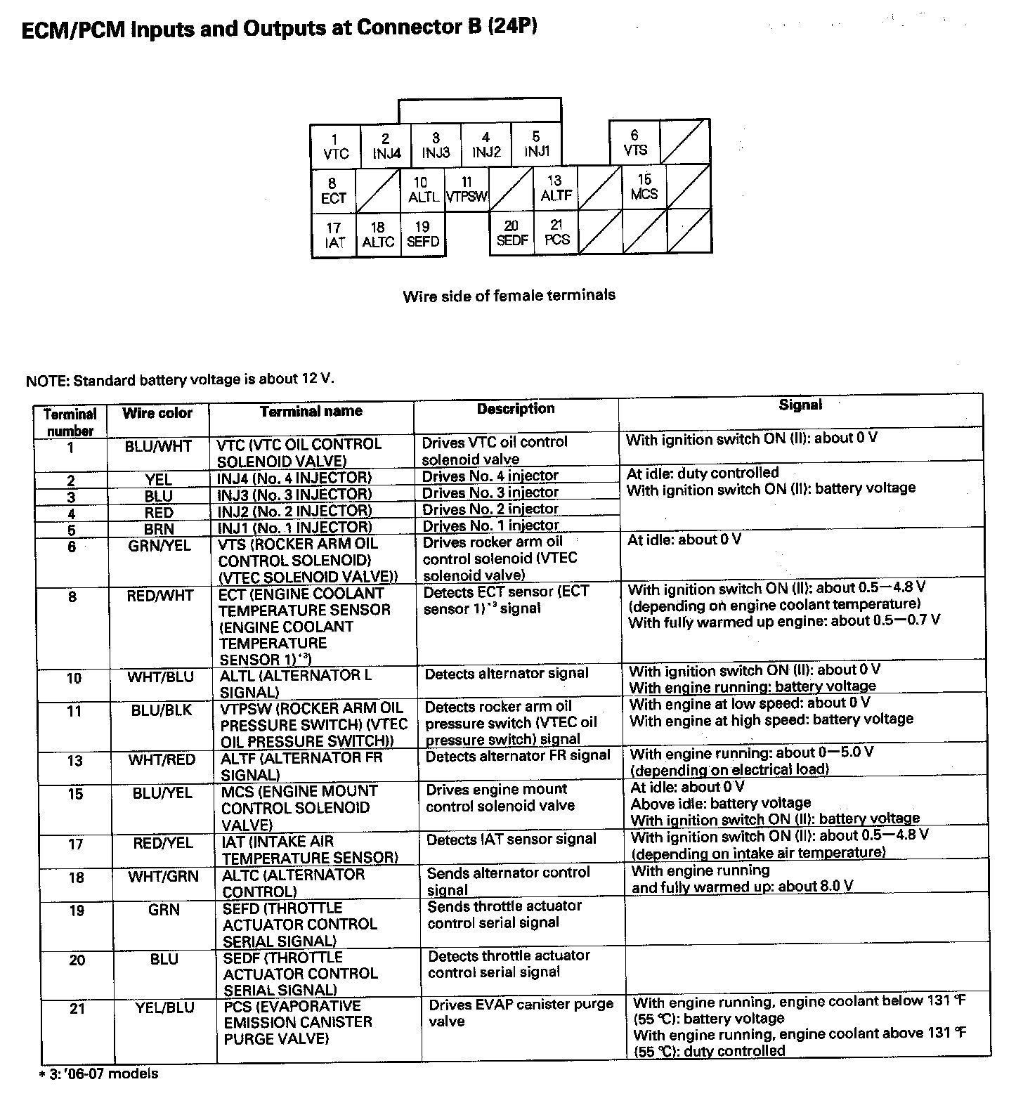 ECM/PCM Inputs And Outputs At Connector B (24P):