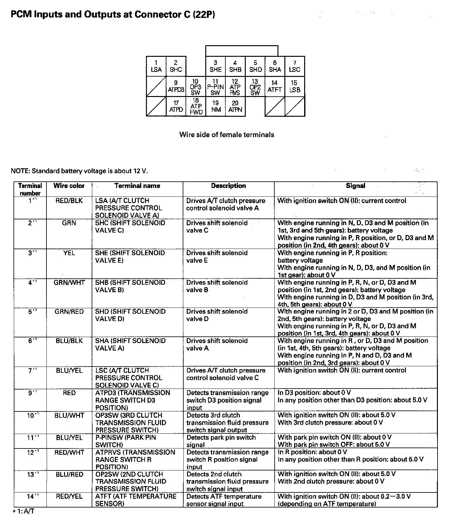 PCM Inputs And Outputs At Connector C (22P) Part 1: