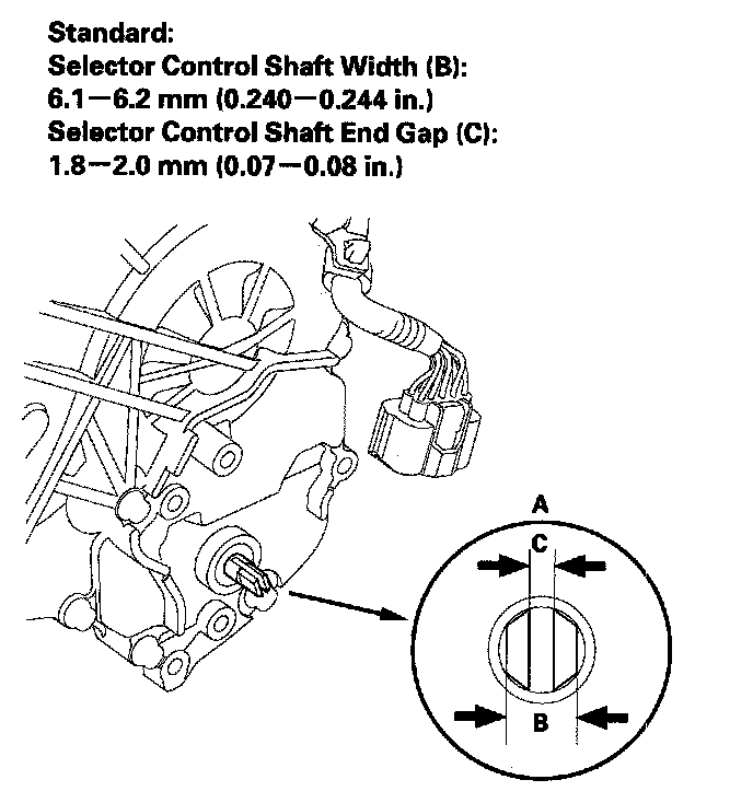 Selector Control Shaft End Gap (C): 1.8-2.0 mm (0.07-0.08 in.)