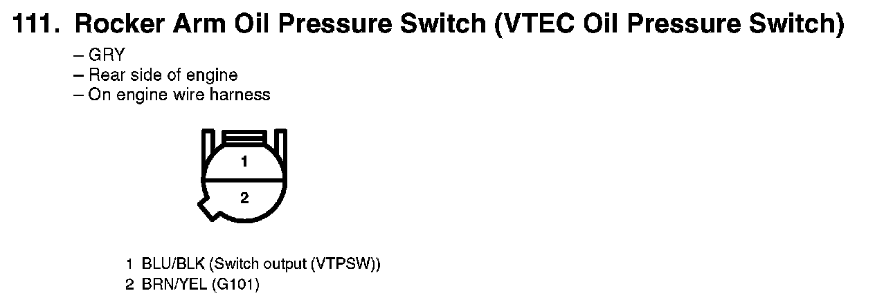 111. Rocker Arm Oil Pressure Switch (VTEC Oil Pressure Switch):