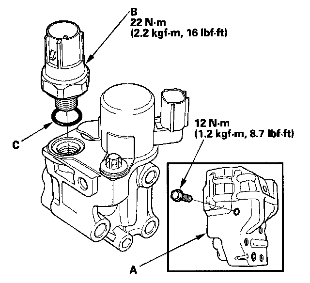 4. Install the parts in the reverse order of removal with a new O-ring (C).