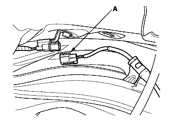 9. Disconnect the wheel sensor 2P connector (A).