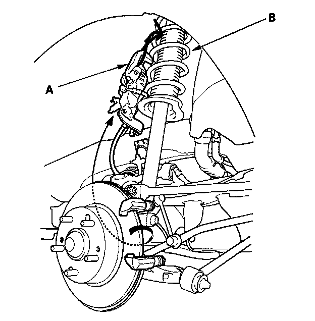 12. Hook the caliper body (A) on to the damper spring (B).