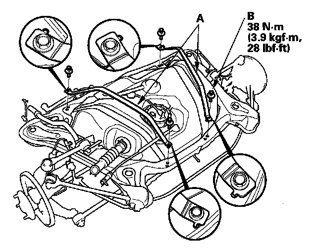 1. Install the tank straps (A), and tighten the bolts (B).
