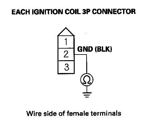 5. Check for continuity between each ignition coil 3P connector terminal No. 2 and body ground.