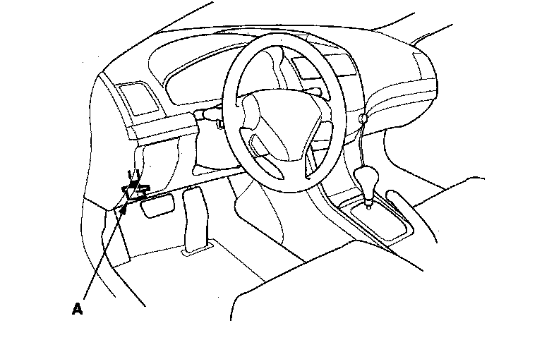 When the D indicator has been reported on, connect the HDS to the DLC (A) (located under the left end of the dash). Turn the ignition switch ON (II), select SCS mode, then the D indicator will indicate (flash) the DTC.