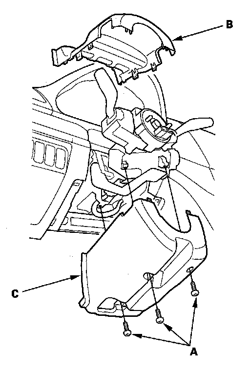 7. Remove the column cover screws (A), then remove the column covers (B, C).