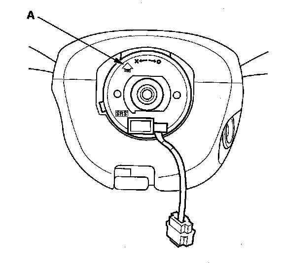 6. If necessary, center the cable reel (New replacement cable reels come centered.). Do this by first rotating the cable reel clockwise until it stops. Then rotate it counterclockwise (about 2 1/2-3 turns) until the arrow mark (A) on the cable reel label points straight up.