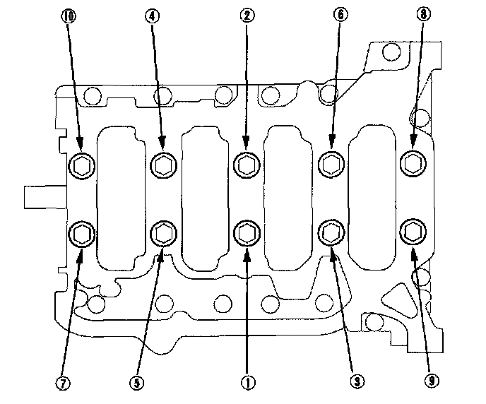 Tighten the cylinder head bolts in sequence 39 Nm (4.0 kgf-m, 29 ft. lbs.)